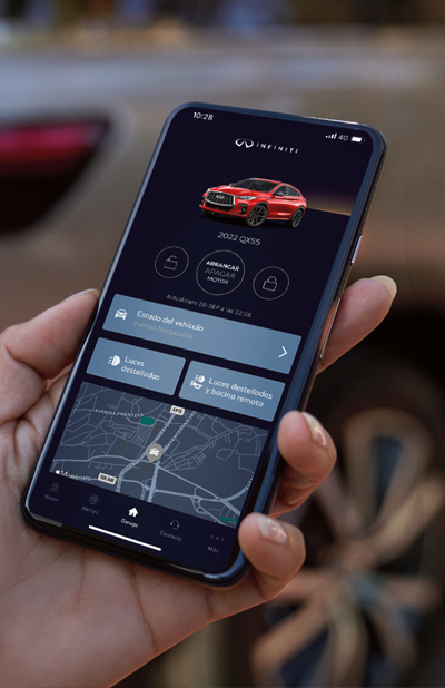 Con esta función podrás encender o apagar tu INFINITI desde la App o Portal Web para que tu auto esté listo cuando lo necesites.