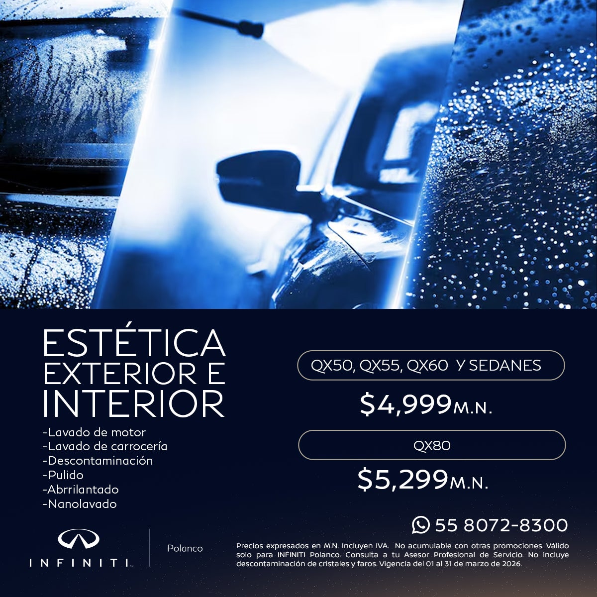 No incluye descontaminación de cristales y faros. Vigencia del 01 al 31 de marzo de 2026.