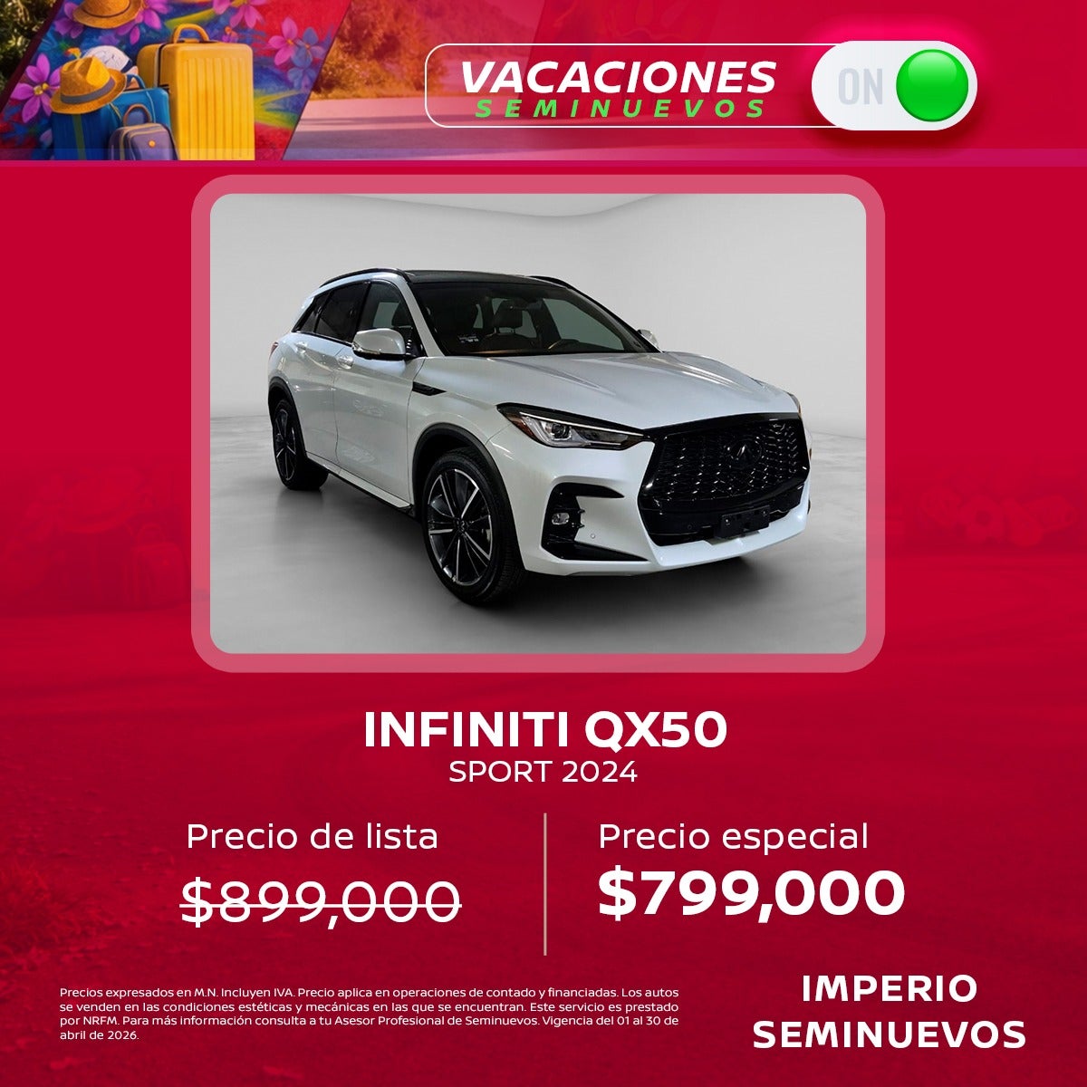Precios expresados en M.N. Incluyen IVA. Precio aplica en operaciones de contado y financiadas. Los autos se venden en las condiciones estéticas y mecánicas en las que se encuentran. Este servicio es prestado por NRFM. Crédito sujeto a previa aprobación. Para más información consulta a tu Asesor Profesional de Seminuevos. Vigencia del 01 al 30 de abril de 2026.