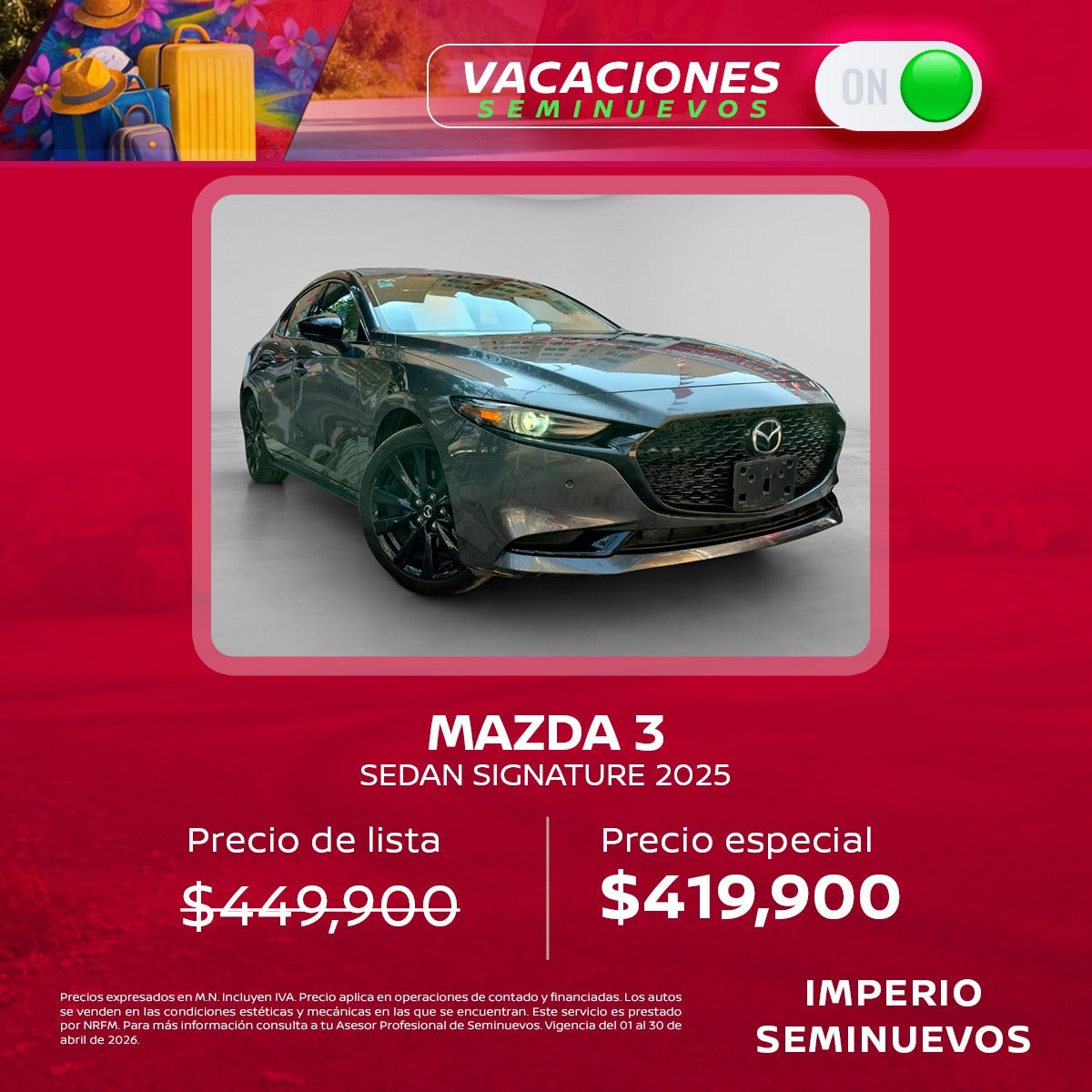 Precios expresados en M.N. Incluyen IVA. Precio aplica en operaciones de contado y financiadas. Los autos se venden en las condiciones estéticas y mecánicas en las que se encuentran. Este servicio es prestado por NRFM. Crédito sujeto a previa aprobación. Para más información consulta a tu Asesor Profesional de Seminuevos. Vigencia del 01 al 30 de abril de 2026.
